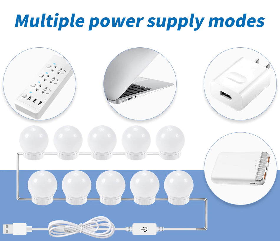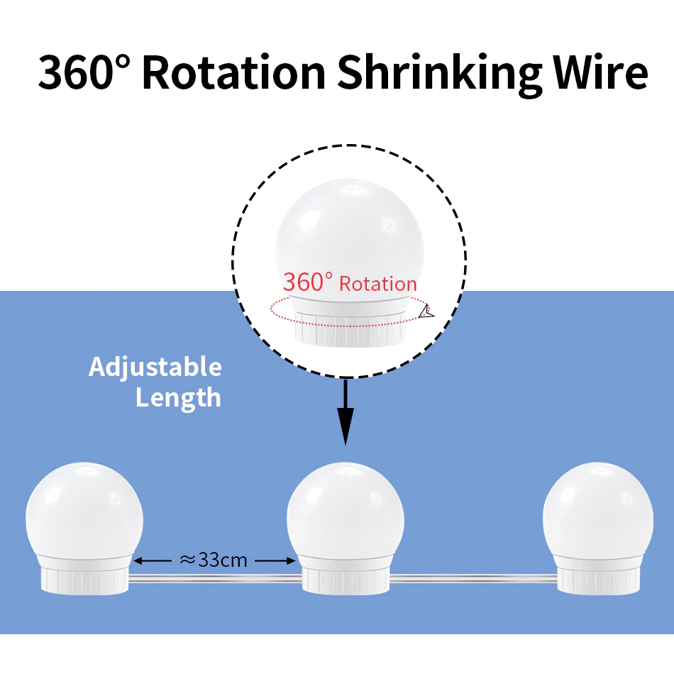Vanity Light LED Bulbs for Makeup Mirror | 10 Bulbs with 3 Light Modes