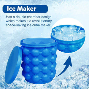 - This remarkable ice cube maker saves space and can easily replace ice cube trays in your freezer. It is made with food-grade flexible silicone with a double chamber design for you to fill water in the outer chamber and lift and squeeze the inner chamber once the water has frozen to release ice cubes. It is also dishwasher safe and has a lid to keep ice cubes fresh.