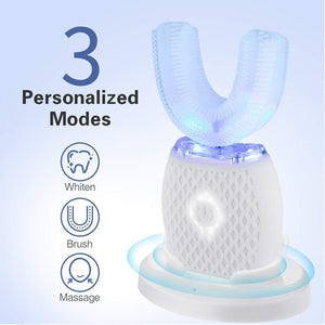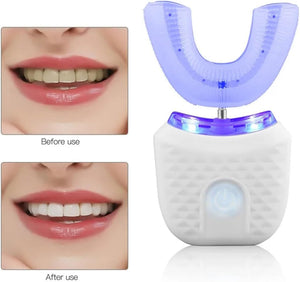 A top-notch electric toothbrush, features a U-shaped design for a comfortable fit, effectively cleaning inner tooth surfaces. Crafted from food-grade silicone, it’s water-resistant, washable, and reusable.