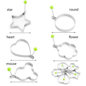 - Various Shapes: Pancake mold set has 5 shapes—circles, hearts, mickey, stars, and flowers. They can help you make a different kind of omelet or sandwich, so life is no longer monotonous!