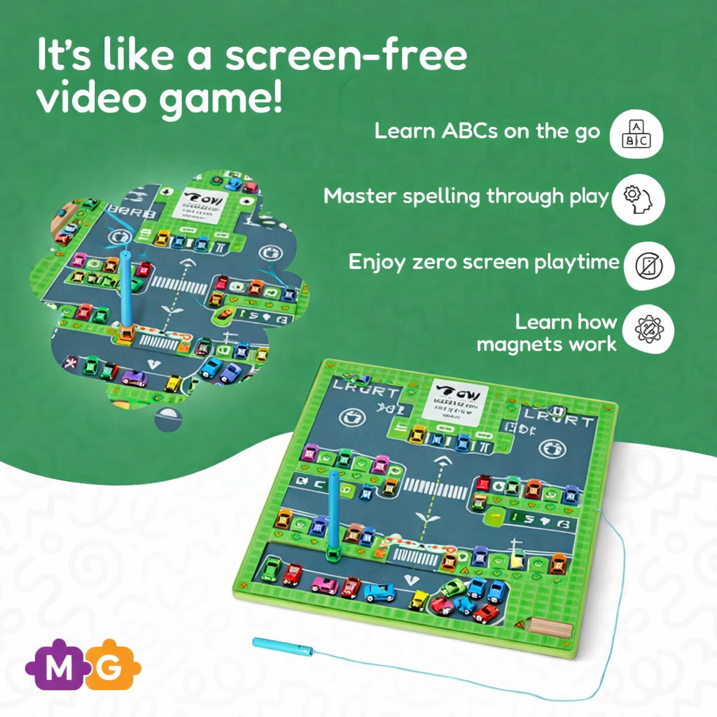 Kids Wooden Montessori Alphabet Parking Maze Magnetic Board