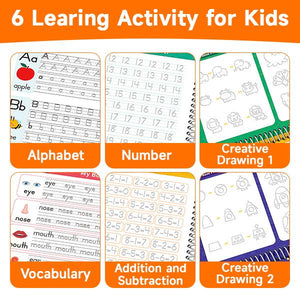 Reusable Magic Grooved Writing Practice Books for Kids - 6 Books Set